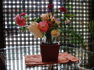散髪に行くホームはアチコチに綺麗な花を飾っています、